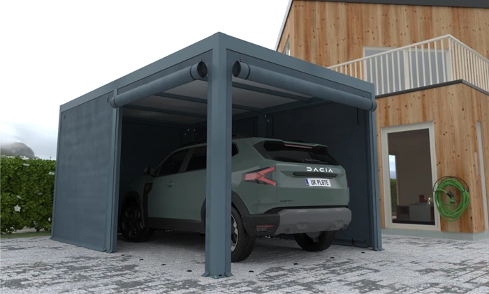 Bâche enroulable pratique pour protéger votre véhicule des intempéries et fermer le carport.