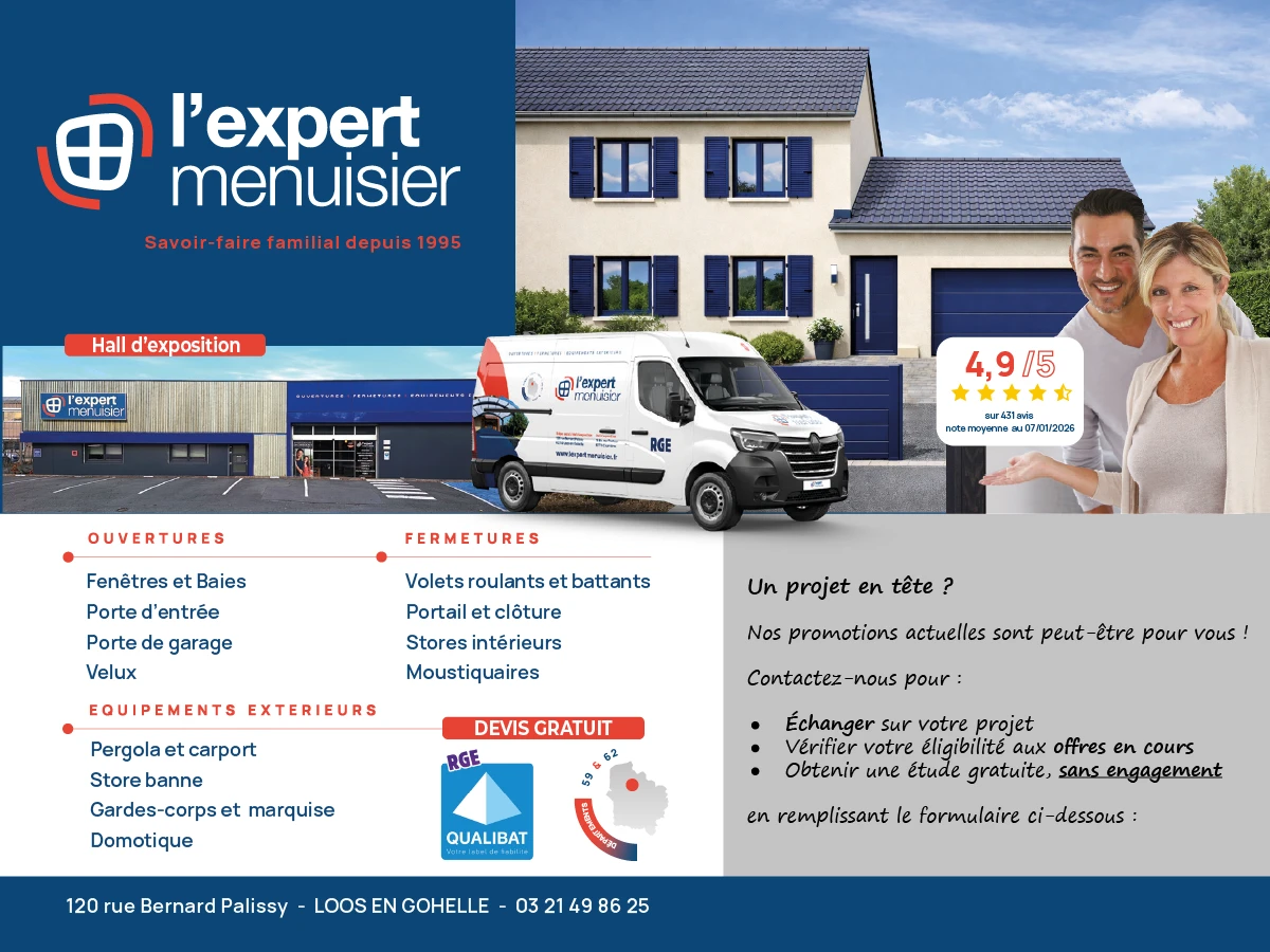 Jusqu’à -20% de remise immédiate ! Sur tous vos projets de rénovation Du 05 janvier au 23 décembre 2026 profitez de remises exceptionnelles ! Bénéficiez de notre offre « Sponsoring Les Marcheurs de la Gohelle » jusqu’à -20 % de remise* selon le montant de votre projet.Fenêtres, portes, volets, pergolas ou portails : plus votre budget progresse,…